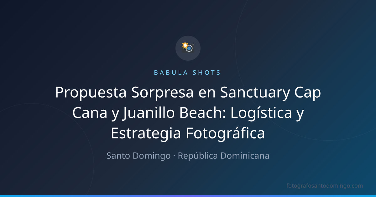 Sanctuary Cap Cana específicamente ofrece algunas opciones únicas. Si la pareja se hospeda en el resort, podemos coordinar gazebo privado en la playa con flores y velas (a través del concierge del hotel — discreto, ellos lo manejan como "decoración romántica de cortesía"). Si prefieren la playa pública de Juanillo, posicionamos al fotógrafo escondido en las dunas de la entrada — perspectiva natural sin que el público interfiera.